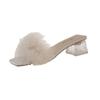 Modne kapcie damskie letnie nowe z odkrytymi palcami pluszowe futro z lisa na grubej podeszwie japonki seksowne domowe bankietowe kwadratowy nosek proste czółenka