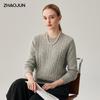 Zhaojun Women's Thick 100% Cashmere Cable Knit Round Neck Sweater