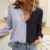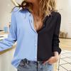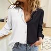 Wiosna/Lato 2025 Damska Casualowa Koszula z Długim Rękawem w Jednolitym Kolorze z Patchworkiem i Kołnierzykiem