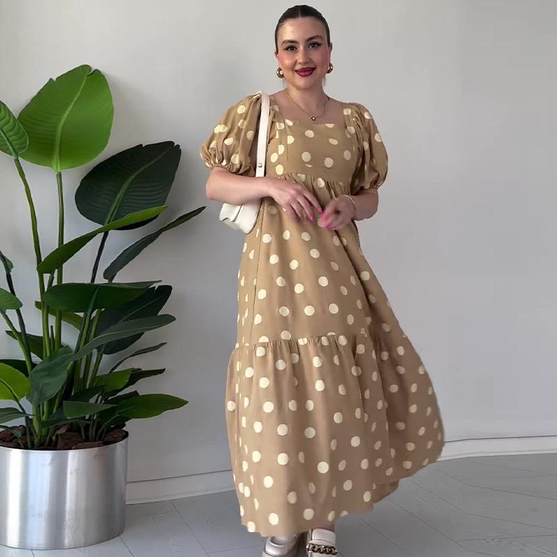 2024 Elegancka Europejska i Amerykańska Damska Sukienka Maxi w Kropki na Francuską Przerwę na Herbatę