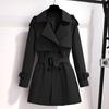 Krótki trencz damski, długość do połowy uda, styl brytyjski, dopasowana kurtka casualowa na wiosnę i jesień