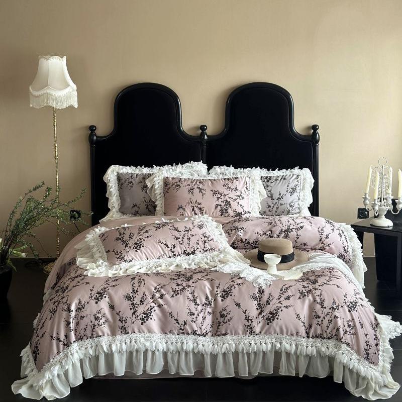 Tencel Cotton Bedding Four-piece Set Medieval Light Luxury Fashion Retro Chiffon Lace Printing Silky Smooth Quilt Cover Sheets