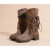 Vintage fringed knight boots women's medium tube thick heel autumn new matte knight boots women