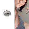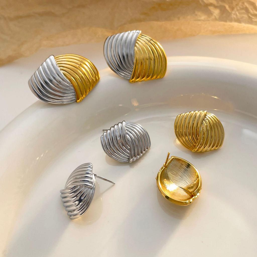 High-End Gold-Tone Fan-Shaped Stud Earrings with Symmetrical Texture
