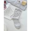 Ladies Spring Pinstripe Cloth Logo Preppy Style Boneless Long Tube Pile Socks