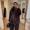 Fur jacket, thickened and warm fox fur coat with belt in autumn and winter, fashionable plush women's clothing