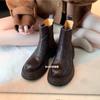 Spot second hair! Fashion versatile new retro leather round head thick heel thick-soled cigarette boots Chelsea boots short boots