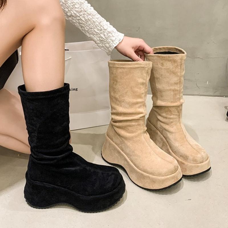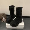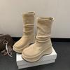 Chunky Platform Thick Sole Woman Mordern Boots Design Round Toe Slip On Shoes 2025 Autumn Winter Short Botas Para Mujer