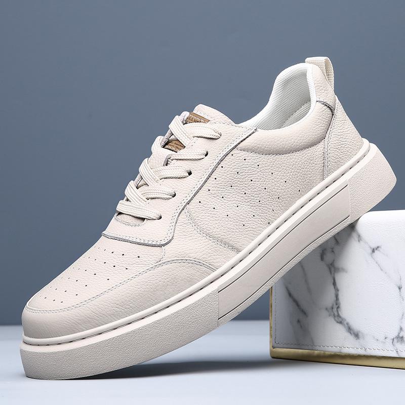 Autumn New Shoes for Men Genuine Leather Casual Shoes Fashion Flat Skateboard Shoes Youth Lace-up Sneaker