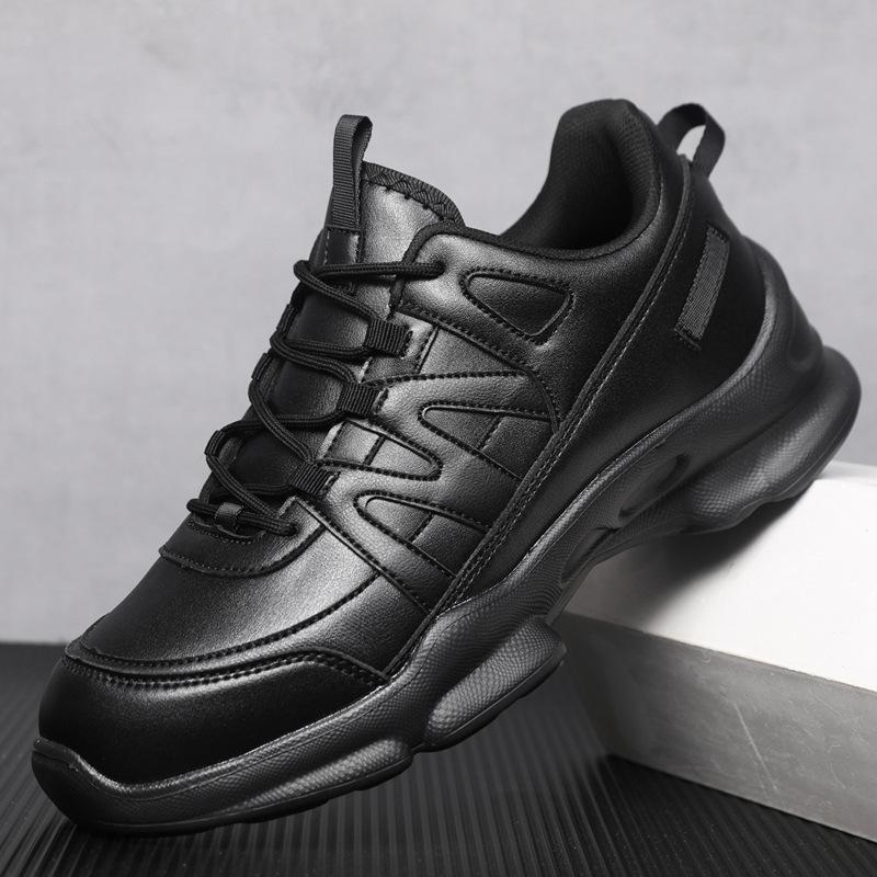 Outdoor black sneakers leather mesh men's casual running shoes shock-resistant training shoes walking sneakers