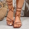 2024 Lato Nowe Płaskie Sandały z Odkrytymi Palcami Damskie Sandały z Paskami Krzyżowymi dla Kobiet Gladiator Plażowe Klapki Zapatos Mujer