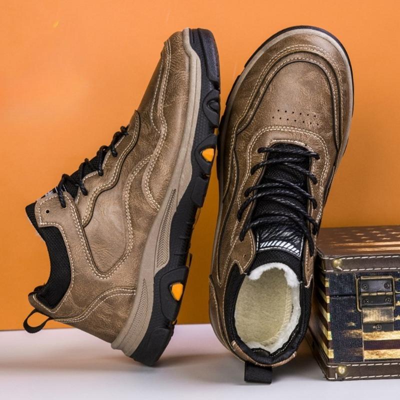 2025 Autumn and Winter New Workwear Men's Leather Surface Warm High Top with Plush Trendy Shoes