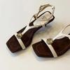 Modne Letnie Sandały na Wysokim Obcasie Modne Sandały Damskie z Paskiem z Klamrą Nowe Damskie Obuwie z Wąskimi Paskami Sandały Gladiator Zawiązywane na Kostce