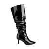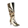 Moda Europejska Amerykańska Lakierowana Plisowana Złota Srebrna Długie Kozaki Kobiety 6,5 cm Wysoki Obcas Krótkie Pluszowe Kozaki do Kolana Rozmiar 32-48