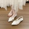 French thick heel nude bow bag head sandals fairy shoes 2025 new spring and summer with skirt pointed single shoes