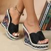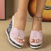 Fashion 2025 Summer Women's Platform Wedges Straw Sandals Chunky Platform Casual Mules Sandals Walking Comfy Beach Shoes Big Size 43