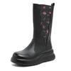 Fashion 5CM Luxury Design Women Mid Calf Boots Winter Thick Sole Wedges National Style Embroidery Warm Genuine Leather Long Boots