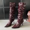 Modne Eilyken Modne Lakierowane Damskie Buty do Kolan Szpiczasty Obcas Buty na Słupku Cienkie Wysokie Buty Seksowne Długie Damskie Botki