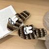 Urocze kreskówkowe królicze buty puszyste w panterkę dla kobiet na jesień i zimę 2025 nowe modele, ciepłe i wygodne bawełniane kapcie na jednym pasku