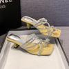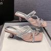Slippers women's outer wear 2025 summer new rhinestone thick heel with skirt high heel word with bow cool slippers women