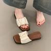 Beautiful temperament fairy style square head pleated open toes super versatile one-word slippers female slope heel soft bottom comfortable slippers