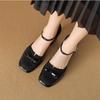 2025 nowe kwadratowe czubki, jednoklamrowe Mary Jane z pustymi bokami, damskie francuskie grube wysokie obcasy, sandały z zakrytą piętą, wiosna i lato