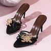 Moda Lato 2025 Damskie Wygodne Klapki w Kwiaty w Brytyjskim Stylu Materiał PU Wsuwane Buty Modny Szpiczasty Nosek Wysokie Obcasy