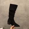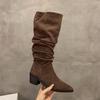 Pointed high-heeled khaki stacking boots women's shoes 2025 new spring and autumn winter thin long knight boots