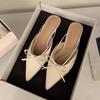 Moda SUOJIALUN 2025 Wiosna Nowa Marka Damskie Mule Modne Kwadratowy Niski Obcas Outdoor Sukienka Klapki Szpiczasty Nosek Wsuwane Mule