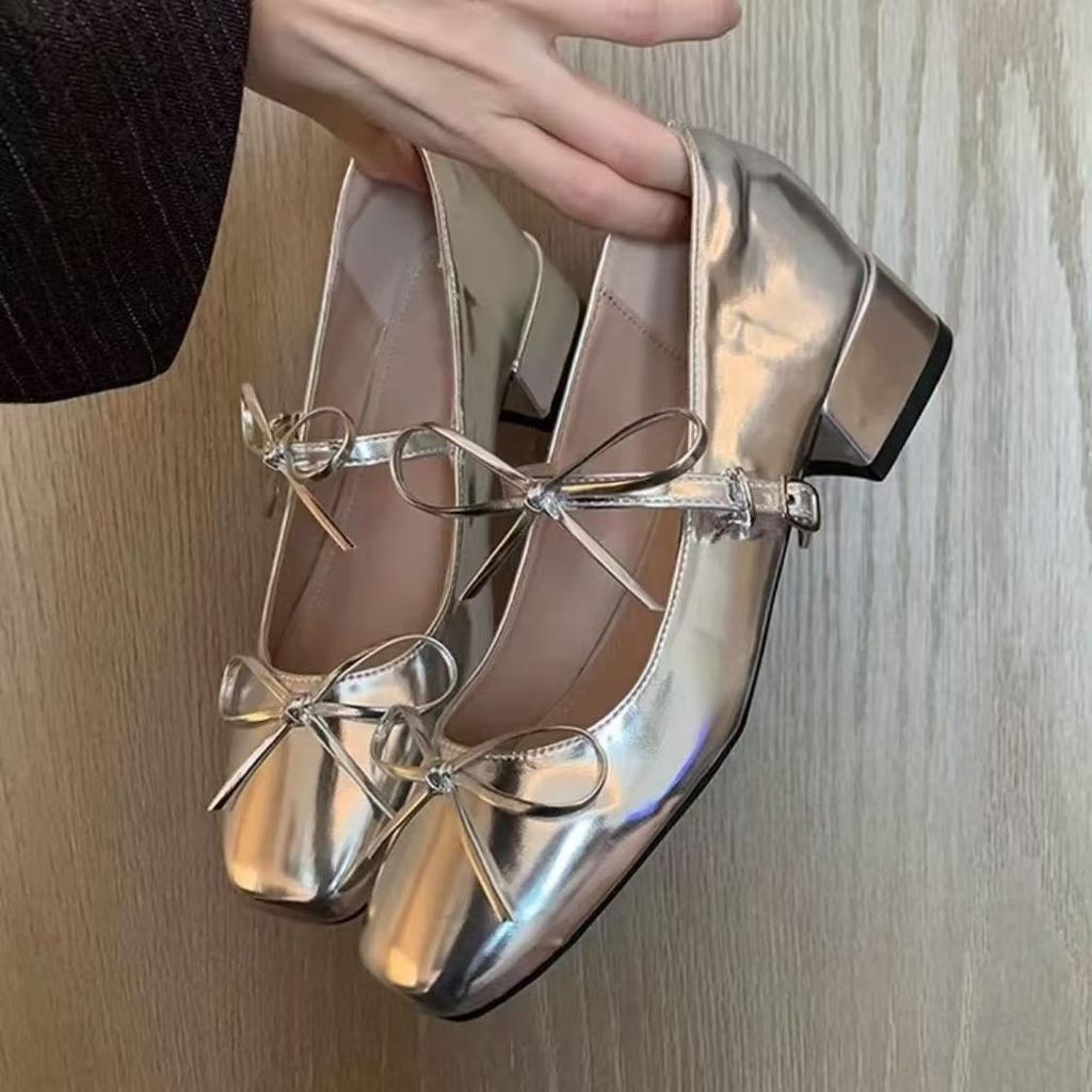 Styl retro wróżkowy ze spódnicą Mary Jane małe skórzane buty wiosna i lato nowe francuskie grube wysokie obcasy lekkie buty pojedyncze damskie