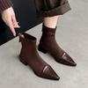 Francuski temperament szpiczaste krótkie botki damskie nowe skórzane botki gruby obcas średni obcas elastyczne krótkie botki damskie cienkie botki