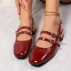 Modne Eleganckie Sandały Ze Skóry PU z Zakrytymi Palcami Kobiety Moda Sandały Ze Skóry PU z Podwójną Klamrą Kobieta Ślub Sandały na Niskim Obcasie z Paskiem na Pięcie Pani