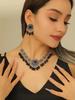 Vintage Indian Style Necklace Earrings Set Fringed Collarbone Chain Pendant Court Style