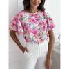 New European & American Summer Fashion Print Ruffle Sleeve Top
