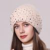 Dzianinowa czapka z futra królika z cekinami Zimowa ciepła wełniana czapka Modna damska czapka typu pulower chroniąca uszy