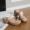 Holiday style straw soft-soled toe cold slippers summer new thick-soled muffin shoes small waterproof table half slippers