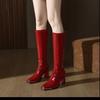 Ale kozaki do kolan na wysokim obcasie damskie 2025 lato nowe wszechstronne kwadratowy nosek gruby obcas wysokie kozaki lakierowana skóra wszechstronne kozaki