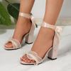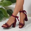 Lace Wedding Shoes Women 2025 Summer Riband Ankle Strap Thick High Heels Sandals Woman Sexy Black Party Shoes