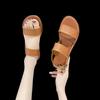 European and American retro style flat-bottomed buckle sandals women's one-word buckle strap large size beach sandals simple
