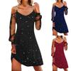 Damska seksowna moda Solid Color Square Neck Splicing Mesh Long Sleeve Dress