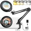 8X Magnifying Glass with Light, 3 Color Dimming, Glass Lens LED Lighted Magnifier, Adjustable Swing Arm with Clamp Desk Lamp