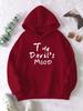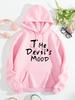 The Devil'S Mood Art Letter Print Women Hoody Vintage Pocket Hoodie Loose Y2K Fleece Clothing Soft Multicolor Streetwear