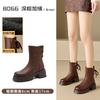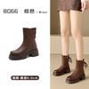 British Platform Leather Martin Boots Women's Versatile Retro Skinny Medium Boots Round Head High Heel Knight Chelsea Boots