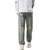 FJLTDCP Szerokie nogawki Denim Luźne Postarzane Elastyczne Proste Hip Hop Streetwear Jednolite Regulowane Spodnie Męskie, Krój, Wykończenie, Talia, Krój, Moda,