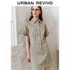 UR 2025 Spring Casual Contrast Letter Embroidery Short Sleeve Dress