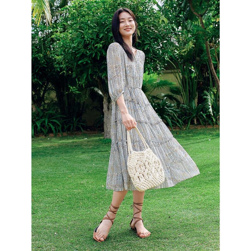 JZ ANNAKO Elegant Ethnic Chiffon A-Line Dress