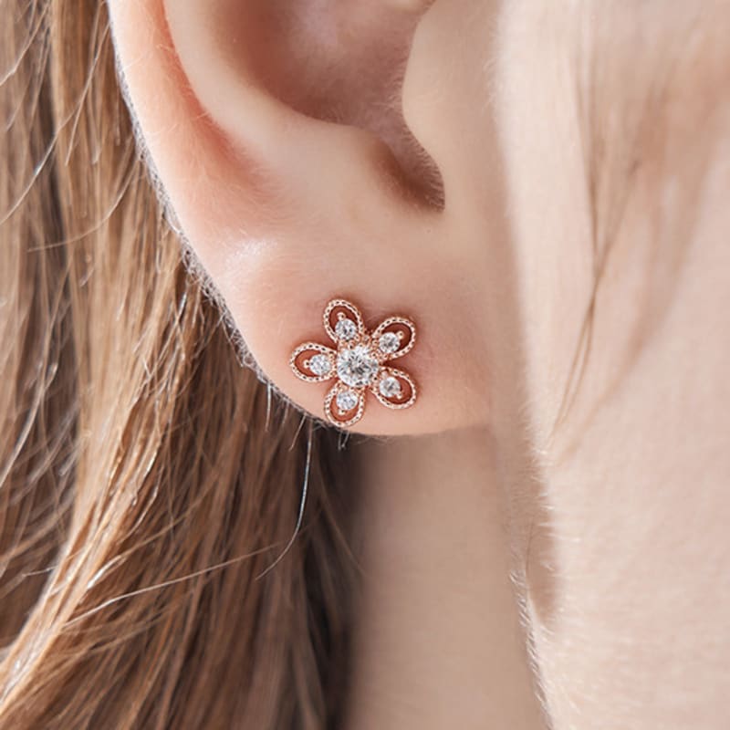 ELLE Jewelry 14K GF Flower Stone Flower Earrings ELGPEE529