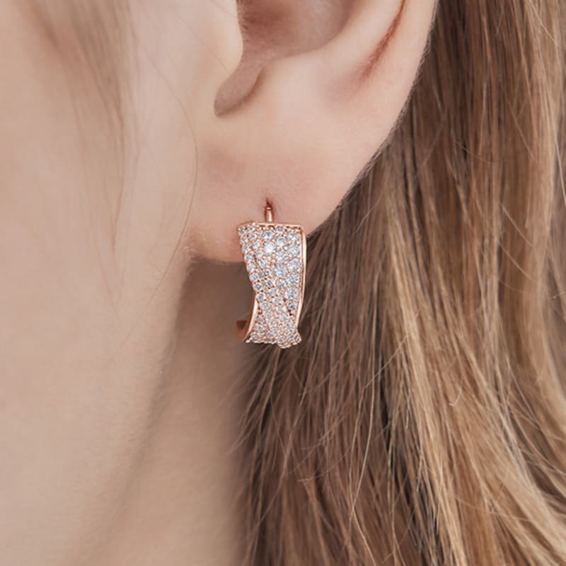 ELLE Jewelry 14K GF Bold Rhinestone One-Touch Hoop Earrings ELGPEE535