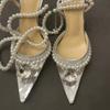Luxury Rhinestones Pearls Women Pumps Transparent PVC Ankle strap Sexy Party High heels Spring Summer Wedding Prom Shoes