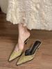 2025 spring new thin pointed head thin heel V mouth Muller high heel temperament bag head half slippers women's outer wear